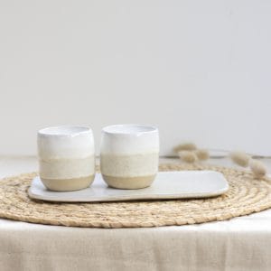 Pocillo blanco con rayas en gres